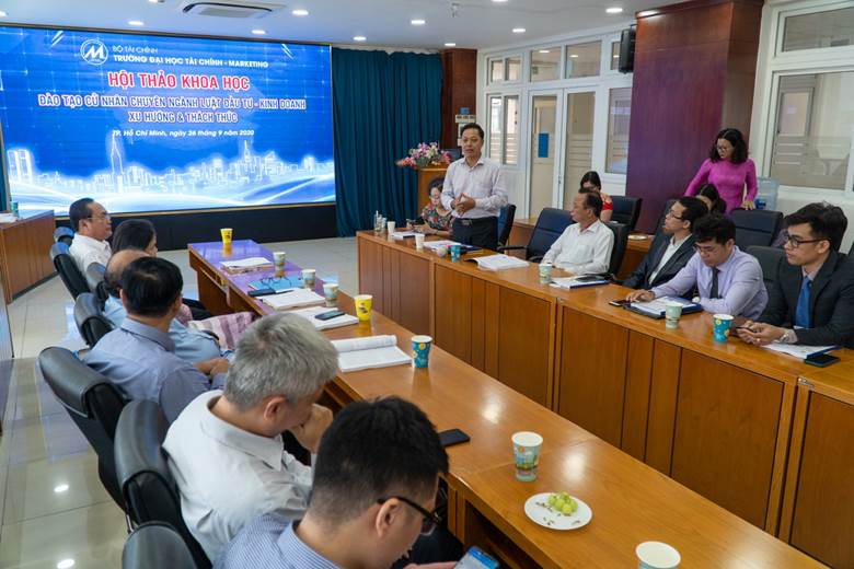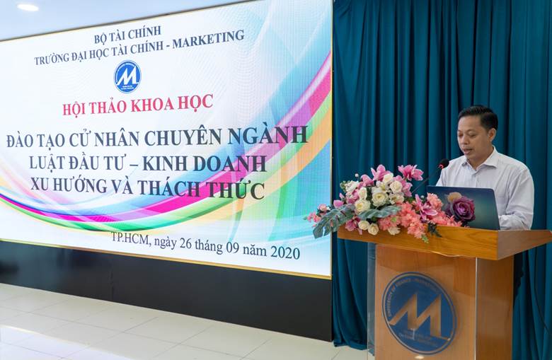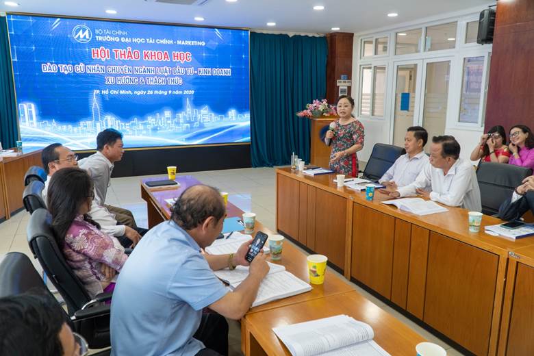 Ngày 26/09/2020, trường Đại học Tài chính – Marketing đã tổ chức hội thảo khoa học với chủ đề “ Đào tạo cử nhân chuyên ngành Luật Đầu tư – Kinh doanh: xu hướng, thách thức. Hội thảo nhận được sự quan tâm và tham gia của nhiều nhà khoa học, thẩm phán cao cấp, kiểm sát viên cao cấp, chấp hành viên cao cấp, luật sư, công chứng viên, giám đốc doanh nghiệp, chuyên viên pháp chế…với những góp ý trọng tâm, chất lượng đã góp phần tạo nên thành công rực rỡ cho hội thảo.