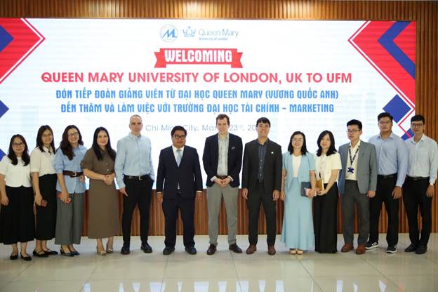 Sáng ngày 23/3/2026, trong khuôn khổ chuyến thăm và làm việc chính thức của đoàn giảng viên Đại học Queen Mary (Vương quốc Anh) tại Trường Đại học Tài chính – Marketing (UFM), đại diện lãnh đạo Khoa Luật, Viện Đào tạo quốc tế, Viện Kinh tế chính trị quốc tế cùng các giảng viên của nhà trường đã tham gia buổi làm việc và trao đổi học thuật với đoàn công tác. Buổi gặp gỡ là dịp để các bên tăng cường kết nối học thuật, thúc đẩy hợp tác quốc tế và chia sẻ các định hướng hợp tác trong lĩnh vực đào tạo và nghiên cứu.