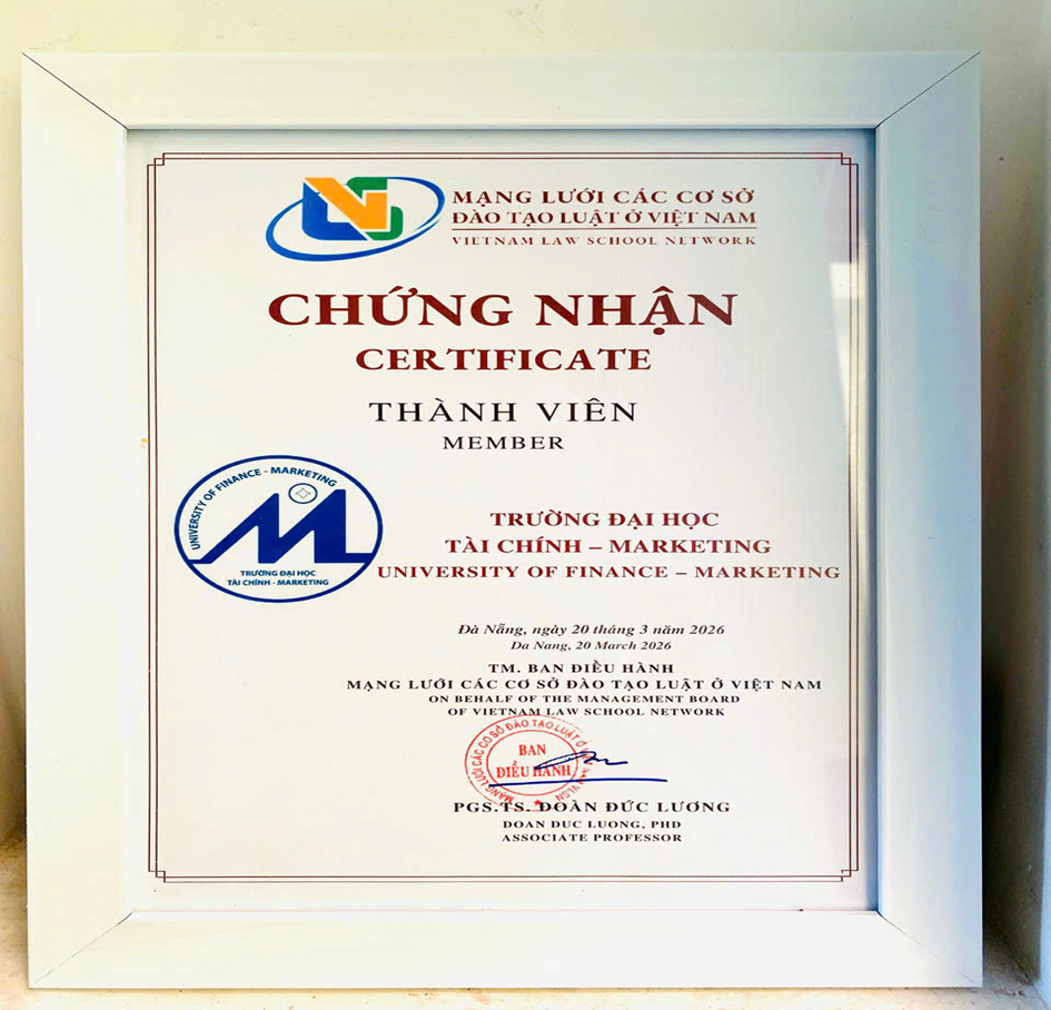 Ngày 20/3/2026, Trường Đại học Tài chính - Marketing (UFM) đã tham dự Hội nghị thường niên Mạng lưới các cơ sở đào tạo Luật tại Việt Nam năm 2026 được tổ chức tại TP. Đà Nẵng và vinh dự nhận giấy chứng nhận thành viên mới của Mạng lưới. Đây là dấu mốc quan trọng, góp phần khẳng định định hướng phát triển đào tạo ngành Luật của Nhà trường theo hướng chất lượng, ứng dụng và hội nhập.